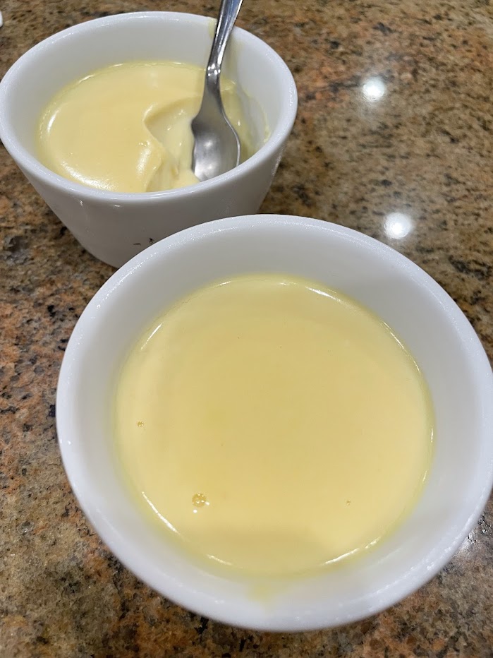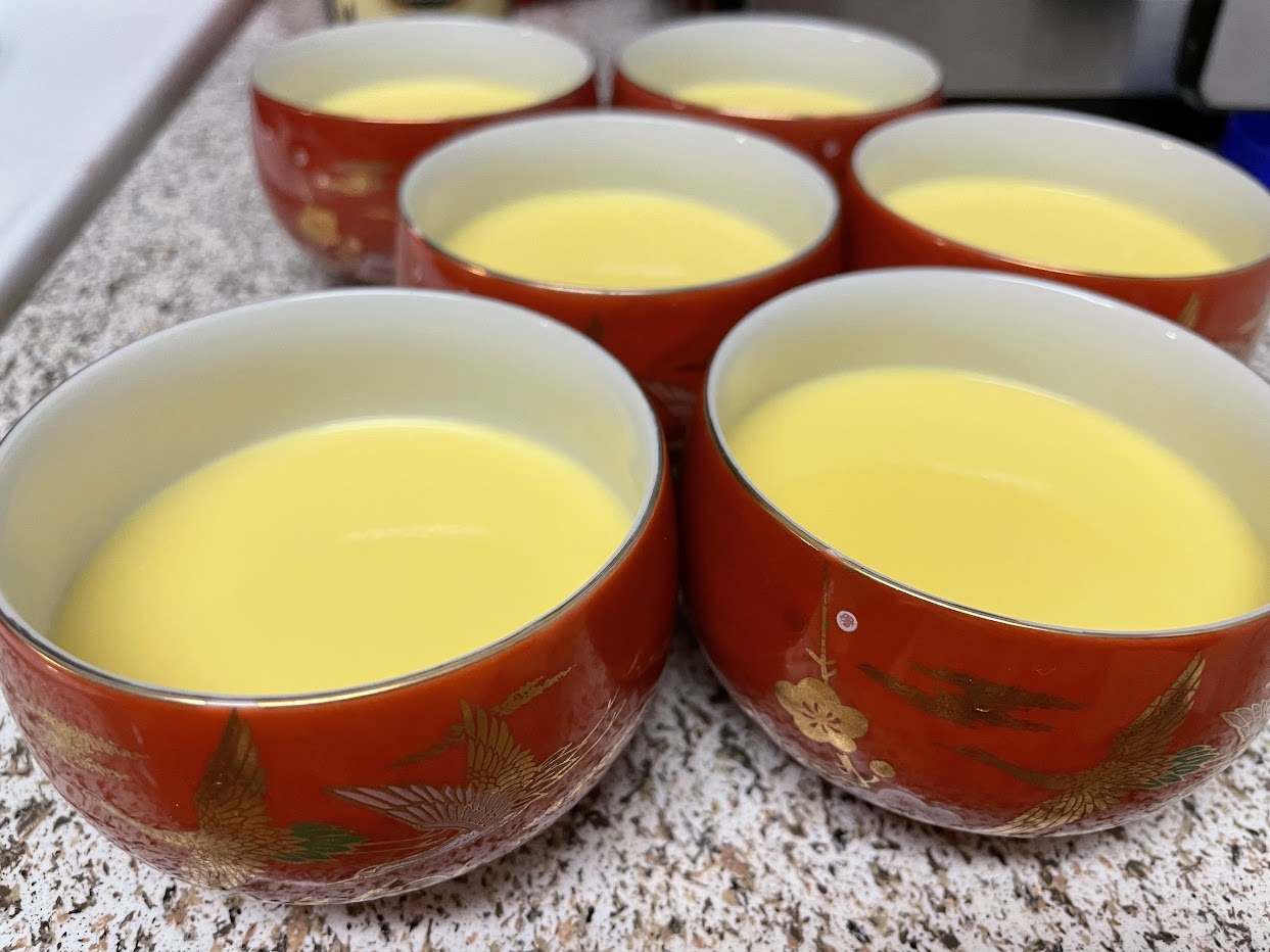 This recipe makes about 6 small ramekins. This is what they look like just after being poured, but they need to be refrigerated so they set.