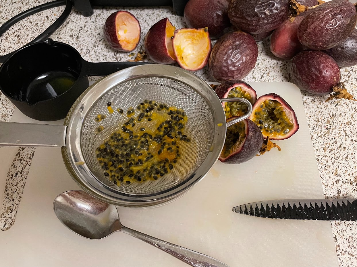 - 1/2 cup seedless passion fruit juice (takes ~10 passion fruits)